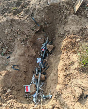 2、使用高壓發生器打壓進行放電定點,使用輪距儀進行距離測量在施工場區找到故障點,如圖所示